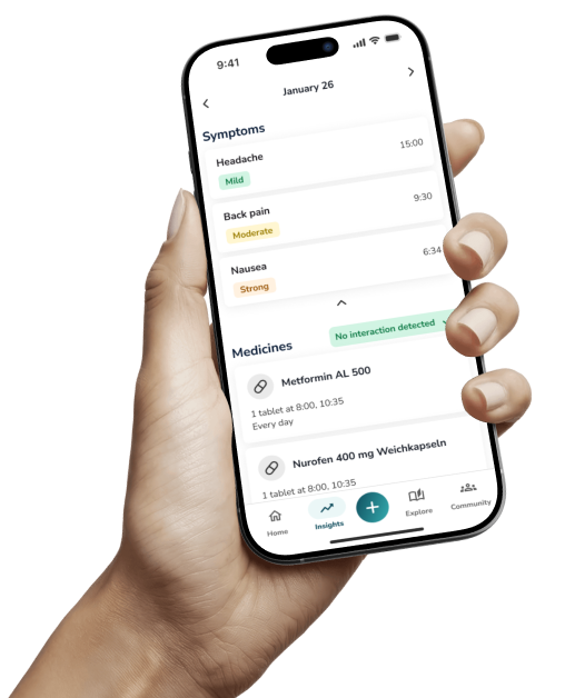 Digitaler Medikationsplan: Erfasse alle Präparate und prüfe, ob die Übelkeit zeitlich mit einer Einnahme zusammenfällt.